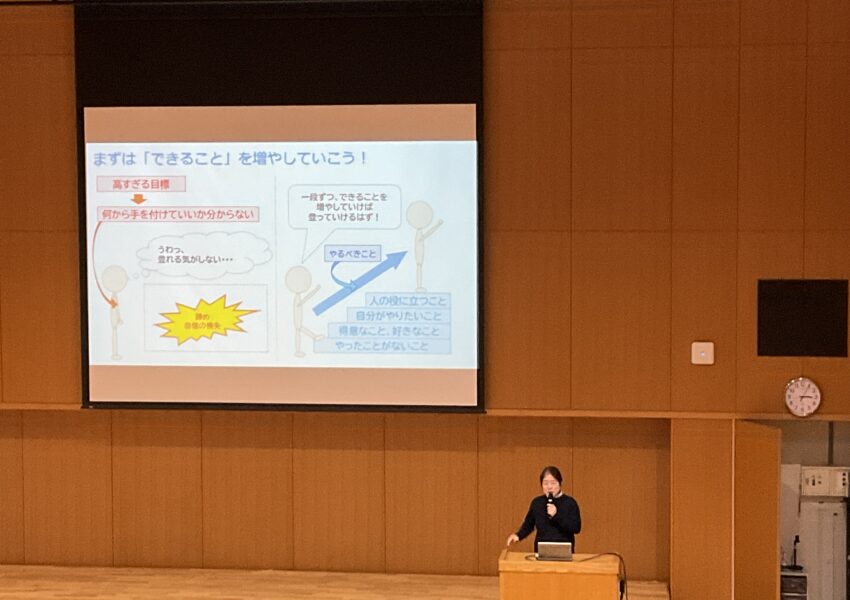 先生方からは「自分の目に映る世界を広げていくことでチャンスを広げていこう」「まずは目の前のことを頑張ろう」というメッセージがおくられていました。今日のお話も心に留めつつ、これから一人ひとりが自分自身と向き合いながら、様々なことに挑戦し、自分の可能性を高めていって欲しいと思います。