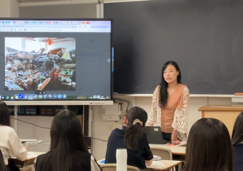 5月29日、高校一年生の総合的な学習であるフィールドワークの岩手宮城方面では、東日本大震災についてのドキュメンタリー映画を制作した菅野結花さんをお招きして、講演会を行いました。