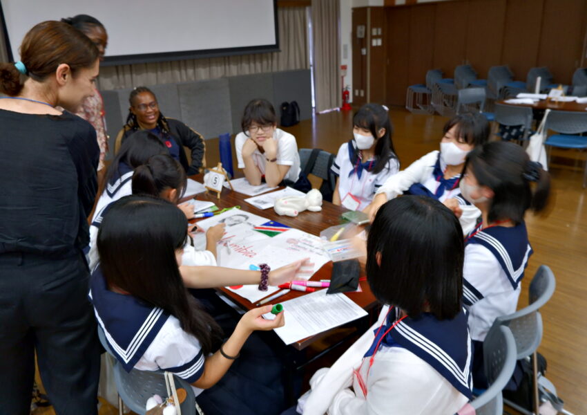10日ほど前に文化祭が無事に終わり、生徒一人ひとりの達成感やクラスの一体感が増しました。そして、9月29日から10月1日の2泊3日で山梨・西湖にある「ホテル光風閣くわるび」でのGVS研修(Global Village for Students)がスタートしました。中学入学後初めての宿泊行事です。様々な出身国のファシリテーターの方たちと出会い、「間違っても大丈夫!」と積極的に楽しく英語を話そうとする姿勢が見られました。
