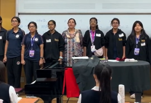 9月30日、インドのヘリテージスクール(Heritage International Xperiential School)とヴァンテージスクール(Vantage Hall Girls’ Residential School)から合わせて41名の生徒さんたちと4名の先生方が訪問され、英会話、体育、音楽の授業に分かれて参加していただき、2時間の楽しい交流の機会を持つことができました。