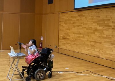 中2家庭科 伊是名夏子さん講演会・車椅子体験