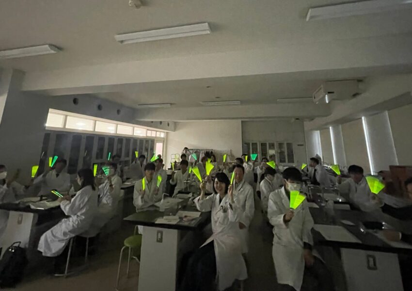 特にUVライトで身の回りの物を観察する実験では、いろんな物が光って、参加した教員も夢中になって照らしていました。こんな風に大人が本気で楽しいと思えるものを、授業の中で生徒たちに伝えていきたいものです。