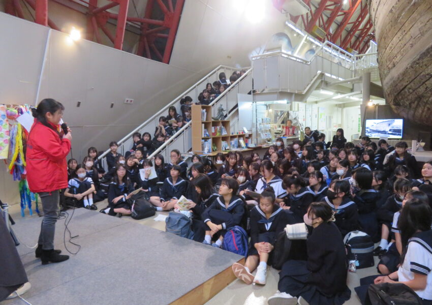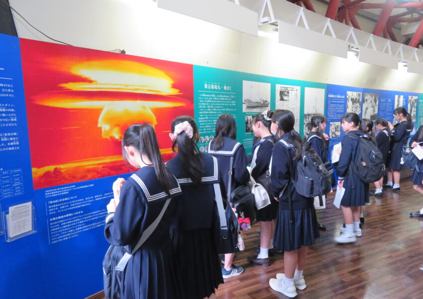 そして最後に訪れたのは第五福竜丸展示館です。中学1年生では、平和学習の一環として元乗組員・故大石又七さんの本を読み、講演会で展示館の市田真理さんのお話を聞いてきました。その学びをもとに、実際の第五福竜丸や展示資料を前にして真剣に見学する姿が多く見られました。「実物の船の大きさに圧倒された」「被ばくの現実を知って胸が痛くなった」「平和の大切さを改めて感じた」といった感想が寄せられ、授業や講演で学んだ内容が自分の中でつながった一日となりました。