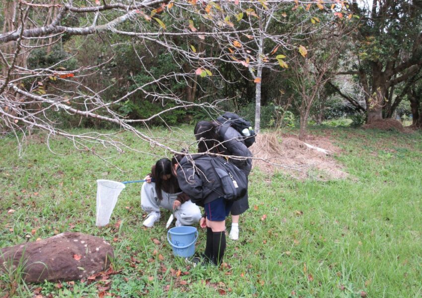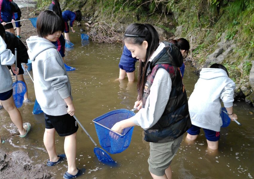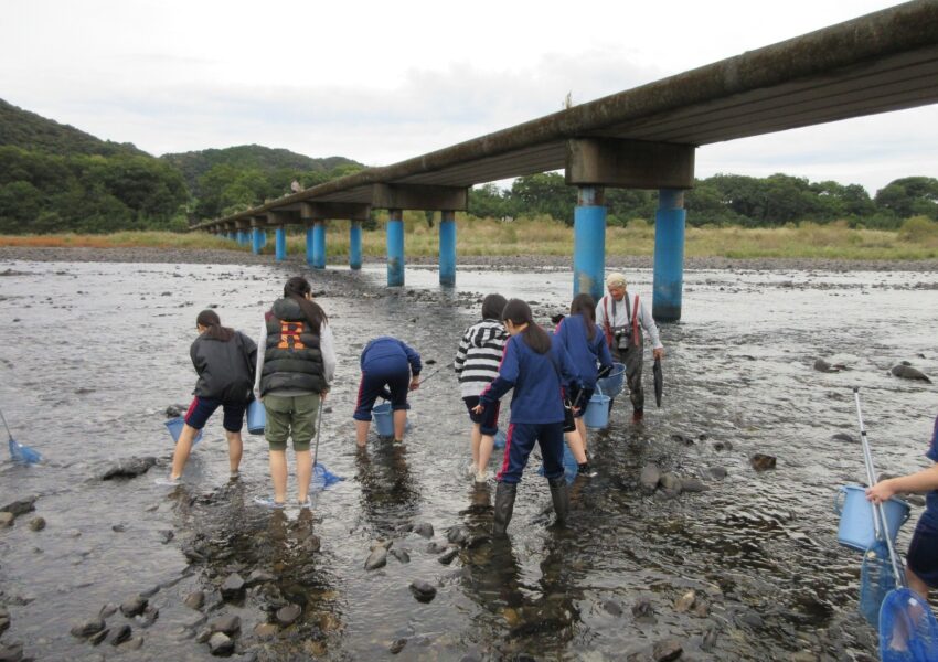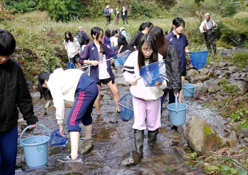 高校一年生のフィールドワーク四万十川方面では、「日本最後の清流」と呼ばれる豊かな自然や過疎化の問題、そして地元に暮らす人々の温かさに触れる貴重な体験をしてきました。実際に川に入って水棲生物を捕まえることができた一方で、「10年前なら一すくいでもっと生き物が取れていた」という現地の方の声を聞き、豊かな自然が残された地域であるがゆえに生物の減少や生態系への影響が大きく出ていることに、生徒は衝撃を受けていました。