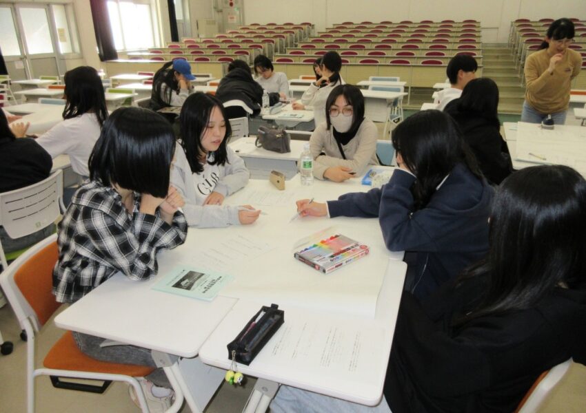 最終日には高知大学地域協働学部を訪問し、大学の先生の指導の下で、フィールドワークでの体験を模造紙にまとめ、発表を行いました。今後はこうした現地での貴重な経験を踏まえながら、さらに自然との共生、持続可能な社会の実現、そして日本各地で進む過疎化について、それぞれが問題意識をもって考えていきます。