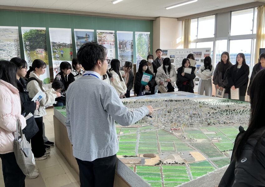 高校1年生のフィールドワーク岩手宮城方面では、東日本大震災の被災地に赴き、現地の方のお話を聞き、各町の現状を見学してきました。釜石市、大槌町、陸前高田市、南三陸町の順に巡り、語り部の方と出会い、当時の状況を模型や写真などで説明していただきました。