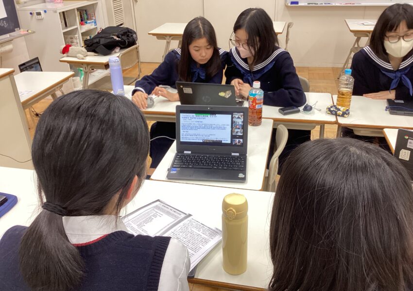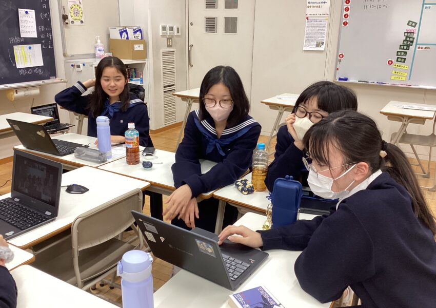 今夏、本校に来て歴史文化交流をした世明高校のみなさんとオンラインで交流をしました。今回は『新・未来をひらく歴史』を日韓で読んで、それぞれの感想や意見を発表し、質問をしてみました。東アジアの経済成長や学歴社会の問題、震災・台風など災害や安全問題、「イクメン」を切り口にした育児とジェンダーの問題などについて、それぞれ感じていることや身の回りの現状を伝えあいました。歴史文化交流から始まった、両校の交流ですが、東アジアの未来をどうつくるか、考える機会となりました。