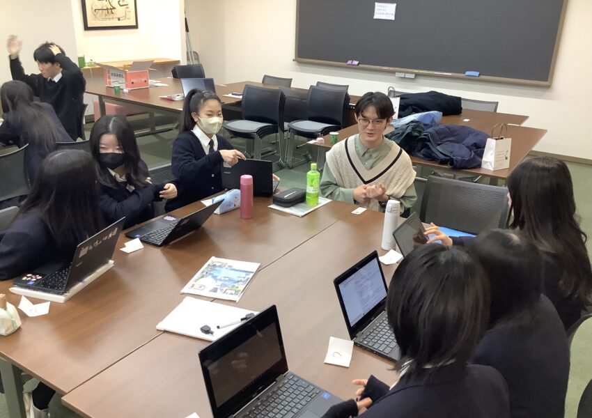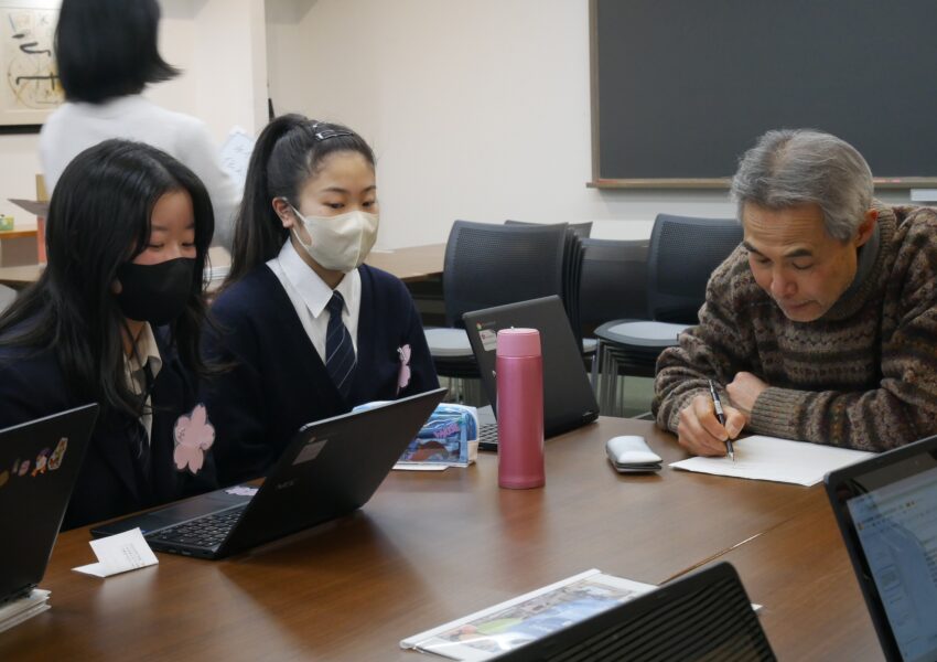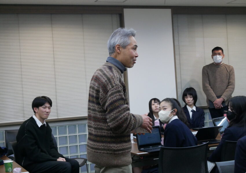 2月12日、FW水俣方面では、東京学芸大学の原子栄一郎先生と自主ゼミに参加している大学生2名をお招きし、交流会を開きました。自主ゼミのみなさんは、環境教育・公害教育を専門とする原子先生と共に水俣を訪れ、さまざまな体験をしています。水俣フィールドスタディーの報告書も見せてくださり、生徒たちは大きな刺激を受けていました。時期は違いますが、水俣を訪れた時の印象は鮮やかで、水俣での気づきや学びを豊かに共有してくださいました。