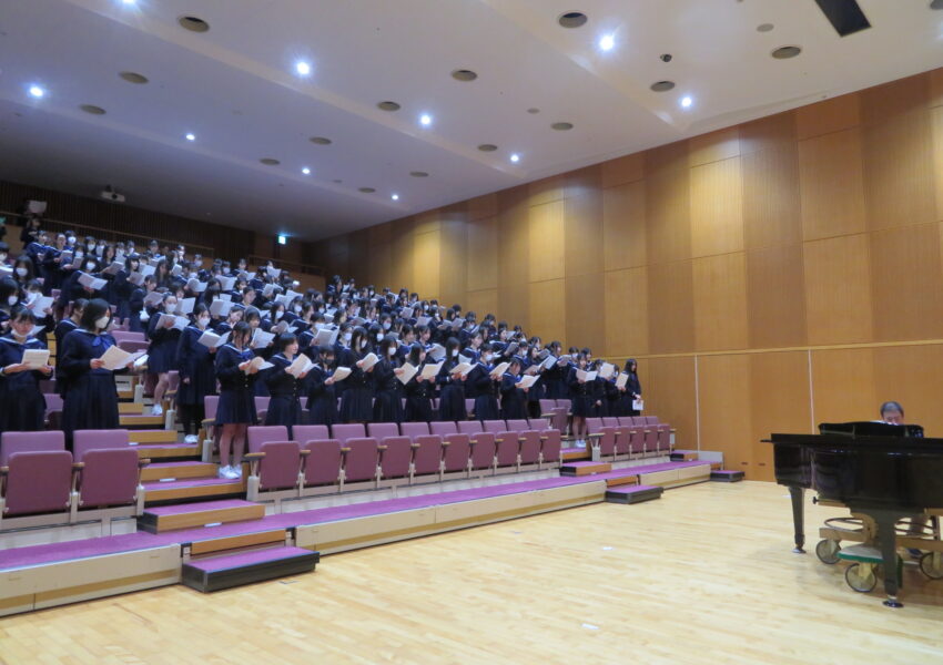 学年全体では「ホームステイシミュレーション」を丁寧に行いました。成田空港に集まった時、飛行機での過ごし方、初めてホストファミリーに出会ったときの挨拶など、現地での自分を思い描いて行動を確認したり、英語の練習をしっかり行うことができました。音楽の先生に指導していただき、現地で披露する歌も練習しました。美しいハーモニーがホールいっぱいに響きました。