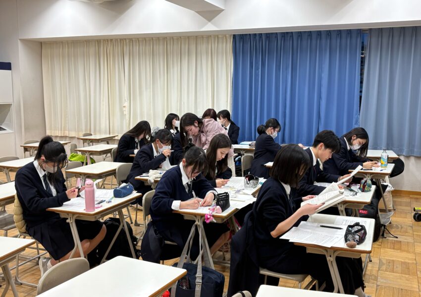本イベントは、高校1年生の希望者を中心に、模試の結果を効率よく復習し、将来の赤本(過去問)演習へと繋げる基礎体力を養うことを目的としています。3日間で60名ほどの生徒が参加し、熱気あふれる時間となりました。