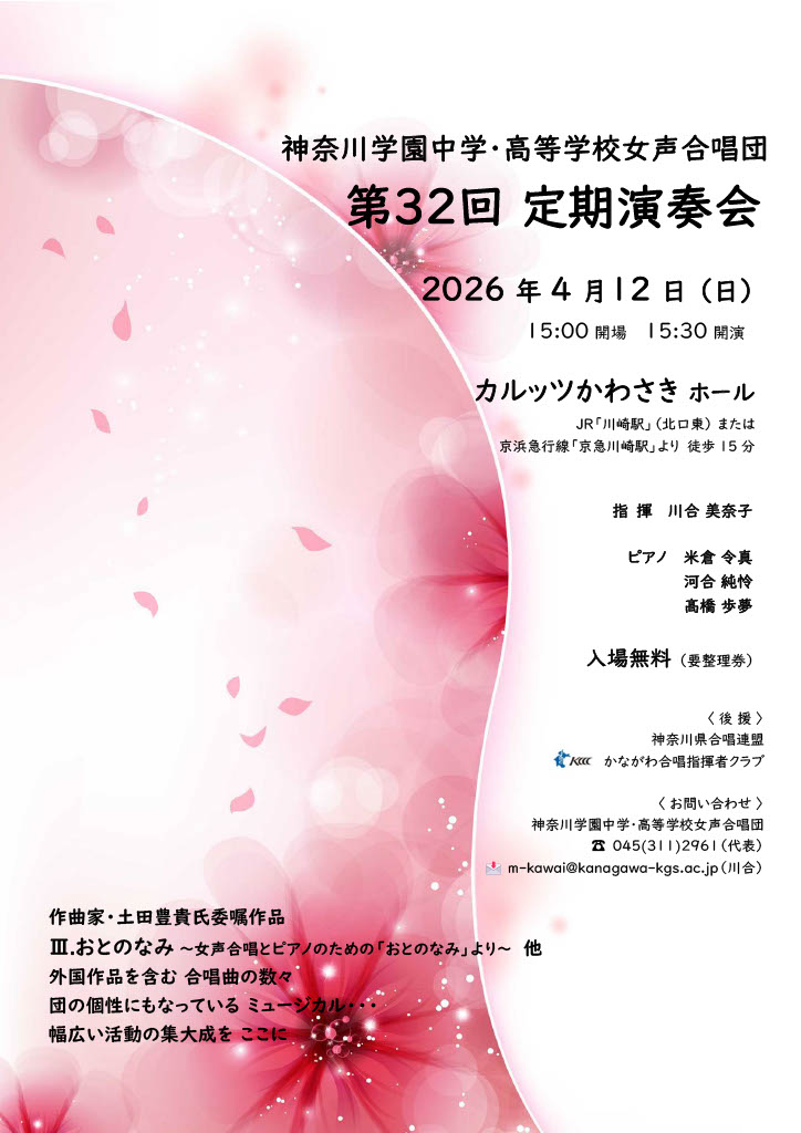コーラス部では、下記の通り第32回定期演奏会を開催する運びとなりました。