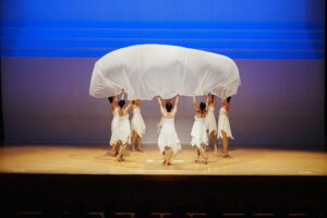 夏には中学・高校ともに大会に出場しているほか、文化祭や春公演に向けて自分たちで作品を作っています。自分たちも楽しめ、お客様にも楽しんでいただけるパフォーマンスをめざしています。